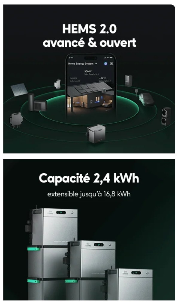 ⚡Capacité 2,4kWh, extensible jusqu'à 16,8kWh